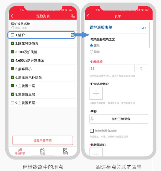 1、巡檢過(guò)程中,讀取巡更點(diǎn)自動(dòng)彈出關(guān)聯(lián)表單。