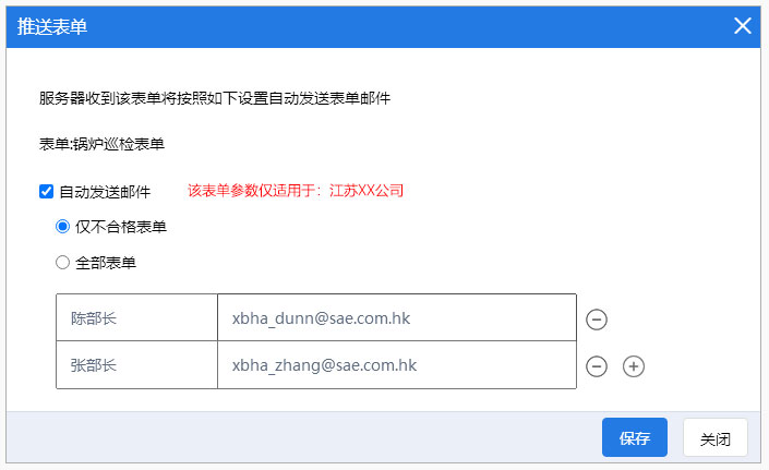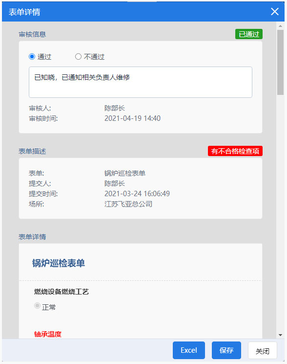 巡檢過(guò)程中,填寫(xiě)的表單中有不合格項(xiàng)目時(shí),你可能希望系統(tǒng)能自動(dòng)提交一個(gè)維修工單,從而實(shí)現(xiàn)閉環(huán)管理。*該功能需要定制API。