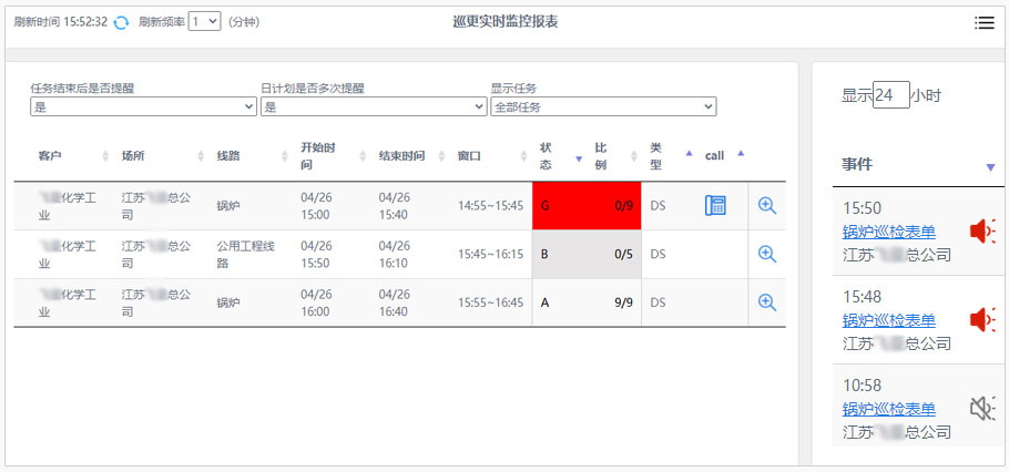 當(dāng)表單中包含不合格檢查項(xiàng)時(shí),“實(shí)時(shí)監(jiān)控”屏幕上會(huì)自動(dòng)彈出報(bào)警提醒